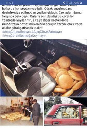 Çörəyin hazırlanması, bükülməsi və daşınması ilə bağlı normativlər var. Görürük ki, bu cür çörəklərin əksəriyyəti necə gəldi-avtomobillərin yük yerində və başqa antisanitar vəziyyətdə daşınır. İnsanlar bu cür çörəklərə tələbat yaratmamalı və bu məsələ tezliklə həll olunmalıdır".