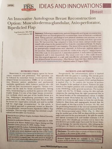 Professor Vaqif Qələndərin məqaləsində "Musculo-derma-glandular,Axii-perforator,Biprdicled Flap" adlandırılan yeni cərrahi yanaşma metodikası təqdim olunur.