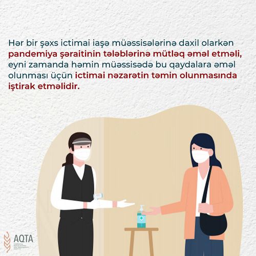 AQTA bir daha sahibkarları və istehlakçıları koronavirus pandemiyası ilə bağlı tətbiq olunmuş xüsusi rejimə əməl etməyə, virusdan qorunmaq üçün tələb olunan metodiki göstərişlərdə nəzərdə tutulmuş qaydalara ciddi şəkildə riayət etməyə çağırır.