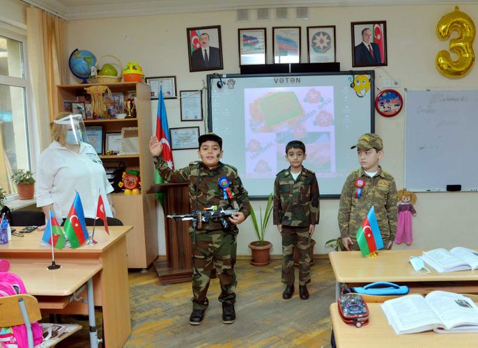 Məktəblərdə şagirdlər tərəfindən torpaqlarımızın azadlığı və bütövlüyü uğrunda şəhid olan Vətən övladlarının ruhu yad edilir. Vətənpərvərlik mövzusunda keçirilən dərslərdə də şagirdlər Ermənistan silahlı birləşmələri tərəfindən dinc əhalinin intensiv atəşə tutulması, Azərbaycan Ordusu tərəfindən düşmən təxribatının qarşısının qəhrəmanlıqla alınması barədə fikirlərini bildirirlər.