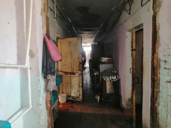 Hə, burada, bu binalarda qaz yoxdur. Ona görə də ya elektrik sobalarından, ya da  odundan istifadə edirlər. Bir kimsə evində odunla yemək bişirdimi, bütün mərtəbələr, bütün mənzillər tüstüylə dolur. Çünki bu mənzillərdə qapı sadəcə simvolikdir, qapı xatirinə qapıdır. Əksəriyyəti sınıq, yerindən qopmuş halda.