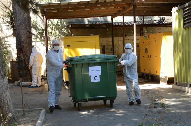 İşlər çərçivəsində kommunal xidmətlərin xüsusi texnikası tərəfindən TƏBİB-in tabeliyində olan xəstəxana və tibb müəssisələrindən istifadə edilmiş qoruyucu geyim və digər vasitələr toplanılaraq Abşeron rayonu, Pirəkəşkül massivindəki Ekologiya və Təbii Sərvətlər Nazirliyi Təhlükəli Tullantılar Poliqonu ərazisində yerləşən xüsusi müəssisəyə təhvil verilir. Təhlükəli tullantılar bu poliqondakı insineratorda (dünya standartlarına cavab verən xüsusi soba) yandırılaraq utilizasiya olunur. Yanma zamanı əmələ gələn tüstü xüsusi filtrlərdən keçir ki, bu da tüstünün insanlara dəyə biləcək ziyanı heçə endirir. Yanma nəticəsində əmələ gələn kül qablara toplanaraq poliqondakı hüceyrələrdə basdırılır.