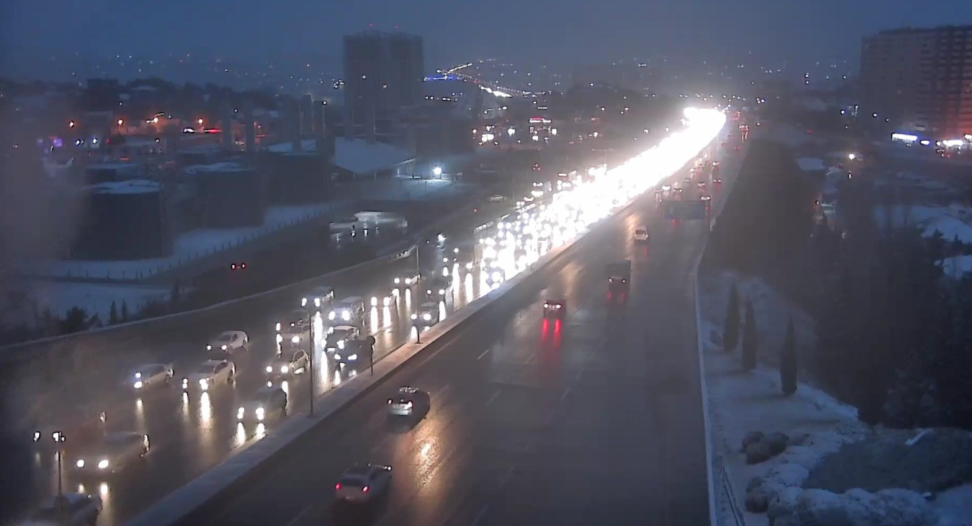 Bakının bir sıra yollarında nəqliyyatın hərəkətində sıxlıq yaranıb.