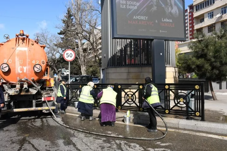 Bakı şəhər İcra Hakimiyyətinin mətbuat xidmətindən Lent.az-a verilən məlumata görə, səhər saatlarından Bakı Şəhər İcra Hakimiyyəti Kommunal təsərrüfat xidmətlərinin texnikası vasitəsilə həm şəhər mərkəzində, həm də qəsəbələrdəki prospekt və küçələri canlılara zərər verməyən yuyucu maddələrlə yuyulub, yol kənarlarında əsaslı təmizlik işləri görülüb.