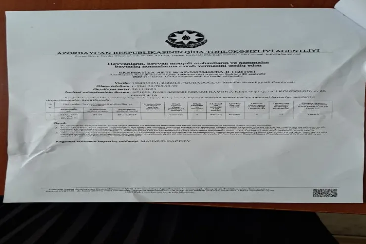 Eyni zamanda qida blokuna baxış zamanı məhsulların temperatur rejiminə, mal qonşuluğuna və istifadəyə yararlılıq müddətlərinə əməl olunduğu, istehlaka təqdim edilən çiy mal ətindən götürülmüş nümunələrin laborator müayinəsi nəticəsində isə hər hansı uyğunsuzluğun aşkar olunmadığı müəyyən edilib.