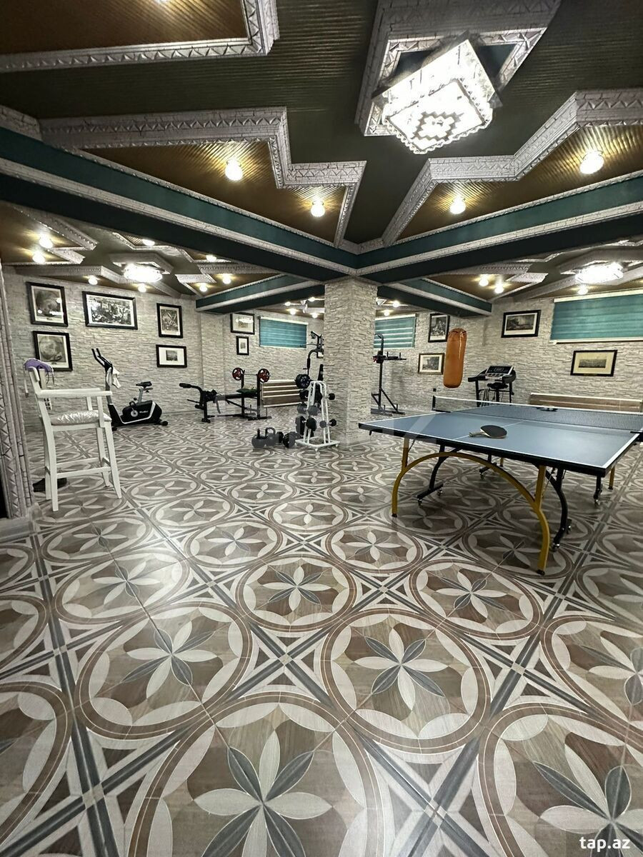 Həyətində 150-dən çox təbii və dekorativ ağac olan bağ evinin həyətində həmçinin yaxta, kater və maşınların saxlanılması üçün qaraj və avtoyuma da təşkil edilib.
