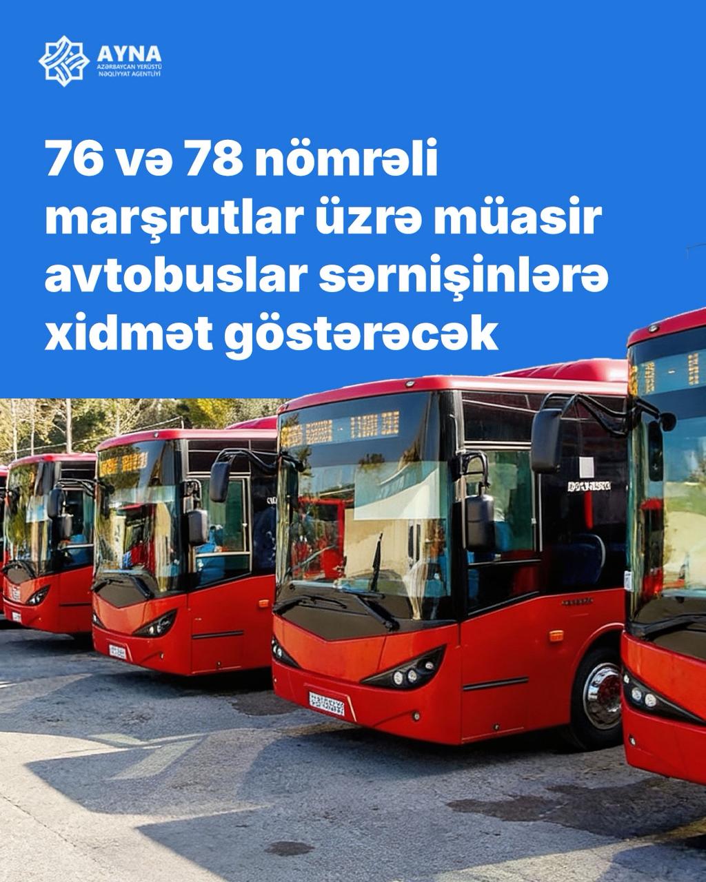 Qeyd olunub ki, fevralın 1-dən Bakıxanov dəmiryol stansiyasını metronun "Neftçilər" stansiyası ilə əlaqələndirən 76 nömrəli və “Qara Qarayev” stansiyası ilə əlaqələndirən 78 nömrəli şəhərdaxili marşrutlar üzrə müasir avtobuslar fəaliyyət göstərəcək.