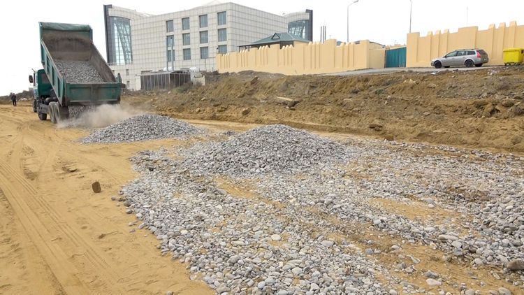 Tikinti layihəsinə uyğun olaraq yeni yol yatağı inşa olunub, yolun profilə salınması üçün müvafiq işlər görülüb. Daha sonra layihədə nəzərdə tutulmuş qalınlıqda yol əsası salınıb. Bura optimal tərkibli qum-çınqıl qarışığından alt və qum-qırmadaş qarışığından üst layının inşası işləri aparılıb.