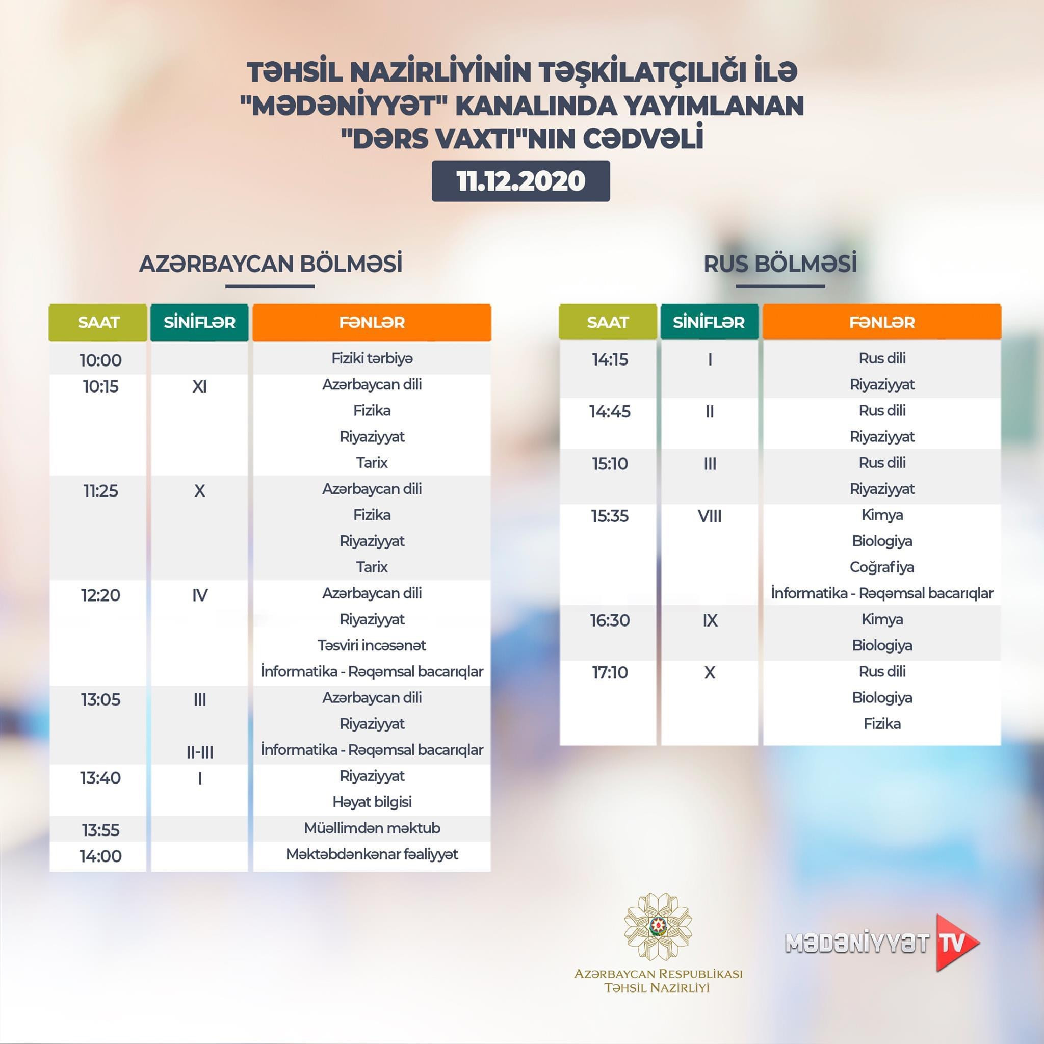 “Dərs vaxtı”nın bugünkü CƏDVƏLİ