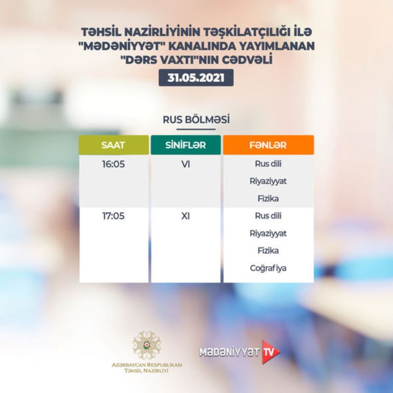 "Dərs vaxtı"nın bugünkü CƏDVƏLİ