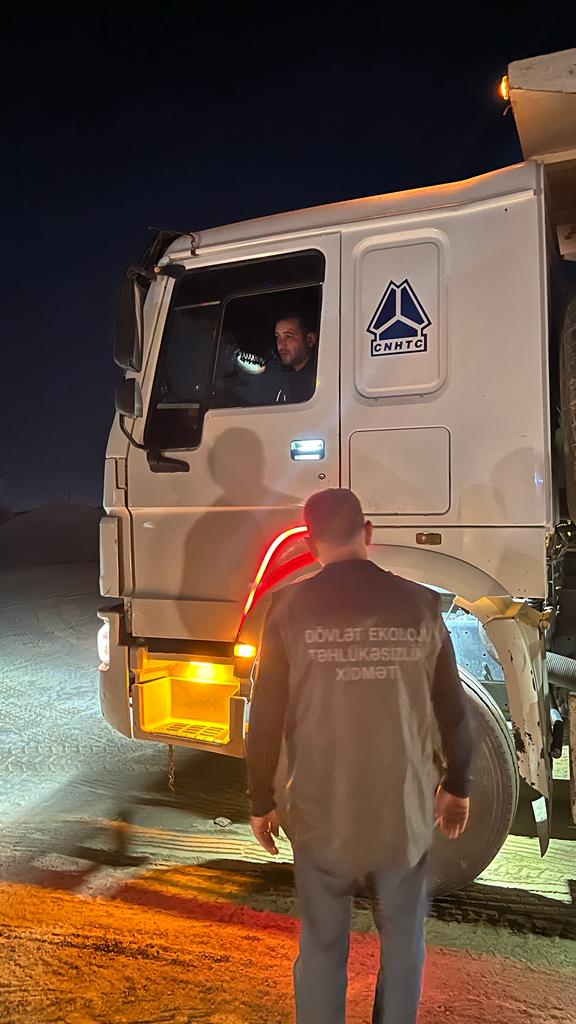 Dövlət Ekoloji Təhlükəsizlik Xidmətinin əməkdaşları tərəfindən keçirilən növbəti nəzarət tədbirləri zamanı Bakı şəhərinin Sabunçu, Xəzər və Binəqədi rayonları ərazisində gecə saatlarında torpaq, qum və qarışıq süxur daşıyan nəqliyyat vasitələri müəyyən olunub.