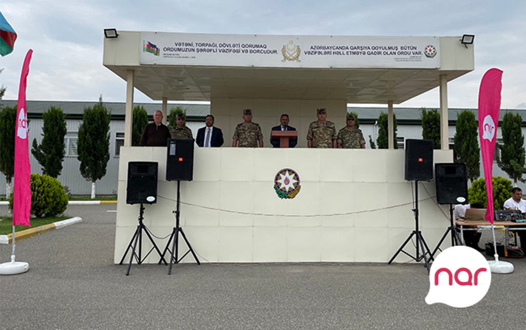"Nar" 26 İyun - Silahlı Qüvvələr Günü ərəfəsində Azərbaycan Ordusuna mənəvi dəstək məqsədilə “N” saylı hərbi hissədə xidmət edən hərbi qulluqçularla görüş keçirib.