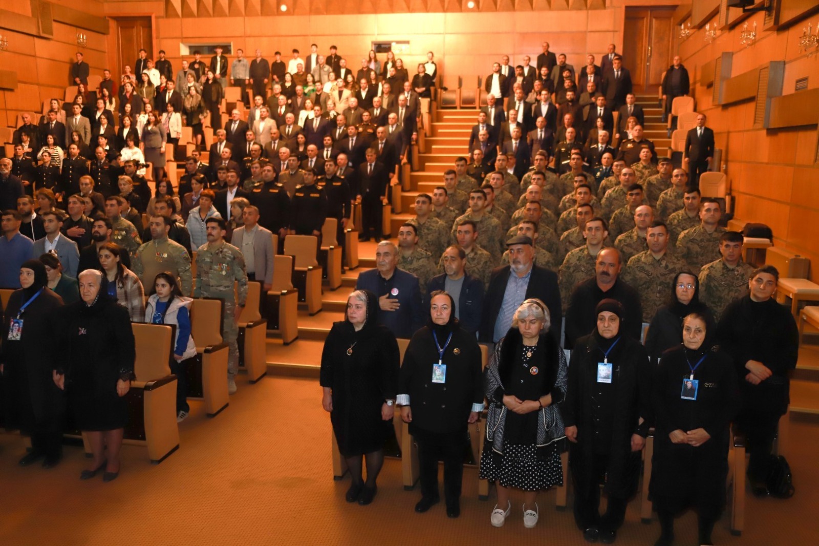 Şəki Dövlət Dram Teatrında tədbir Dövlət Himninin səsləndirilməsi ilə başlayıb. Şəhidlərin xatirəsi bir dəqiqəlik sükutla yad edilib.