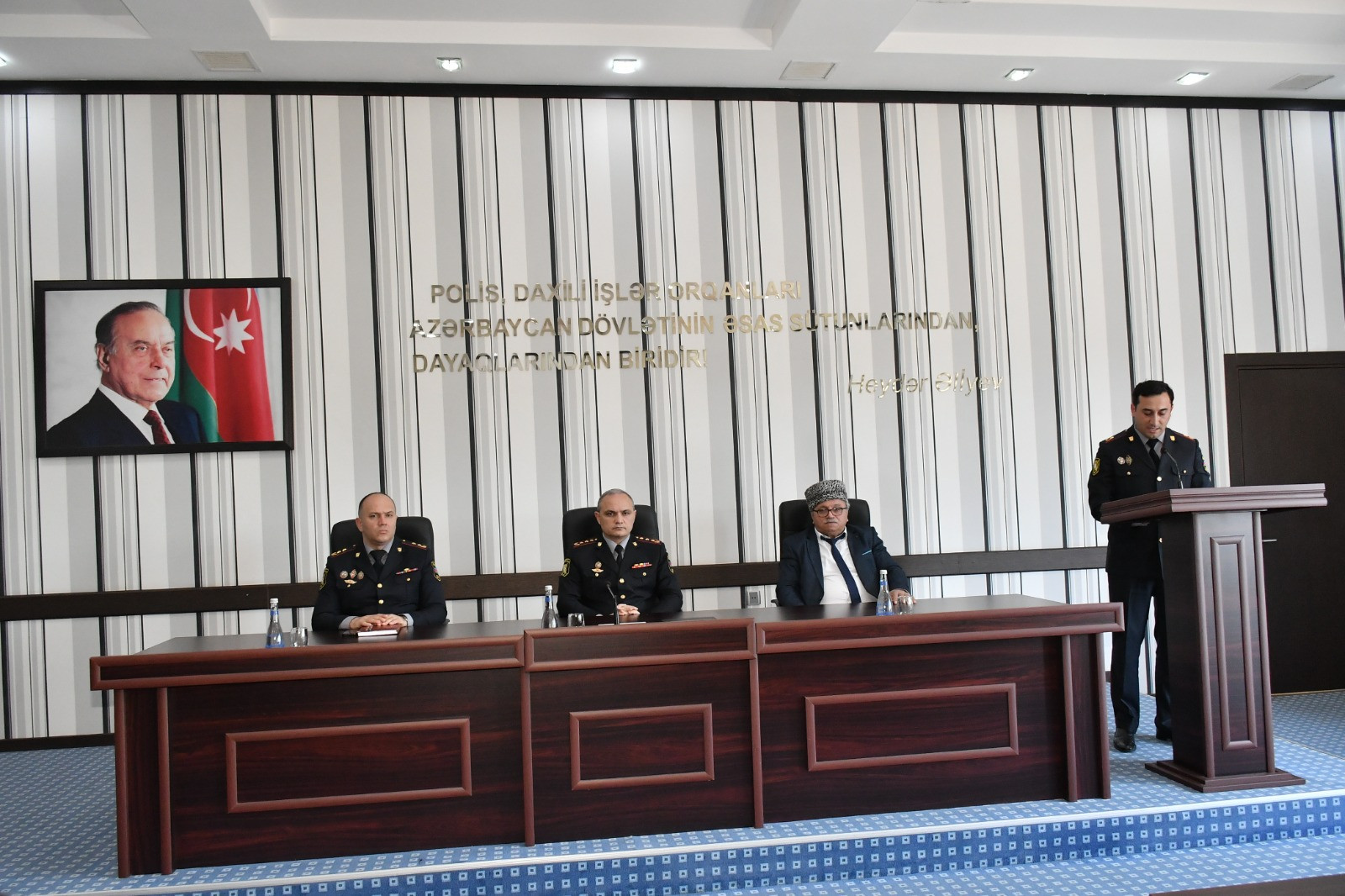 Tədbiri giriş sözü ilə açan Polis İdarəsinin rəisi, polis polkovniki Fəqan Azadəliyev bildirib ki, Azərbaycan Respublikası Prezidenti cənab İlham Əliyevin sərəncamı ilə Azərbaycan Respublikasında 2023-cü il “Heydər Əliyev ili” elan edilib. Polis rəisi qeyd edib ki, ulu öndərimizin Azərbaycan xalqının zəngin dəyərlərinin tanıdılması və ölkəmizin beynəlxalq münasibətlər sistemində layiqli mövqe qazanmasında müstəsna rol oynayıb. O, bildirib ki, müstəqilliyin möhkəmlənməsində daxili işlər orqanlarının fəaliyyəti daim ulu öndər Heydər Əliyevin diqqət mərkəzində olub. Daha sonra qeyd olunub ki, Heydər Əliyevin Azərbaycanın işıqlı gələcəyinə hesablanmış mükəmməl siyasətini uğurla inkişaf etdirən dövlət başçımız cənab İlham Əliyevin rəhbərliyi ilə ölkəmiz öz tarixinin ən qüdrətli dövrünü yaşayır, yeni zəfərlərə doğru inamla irəliləyir.