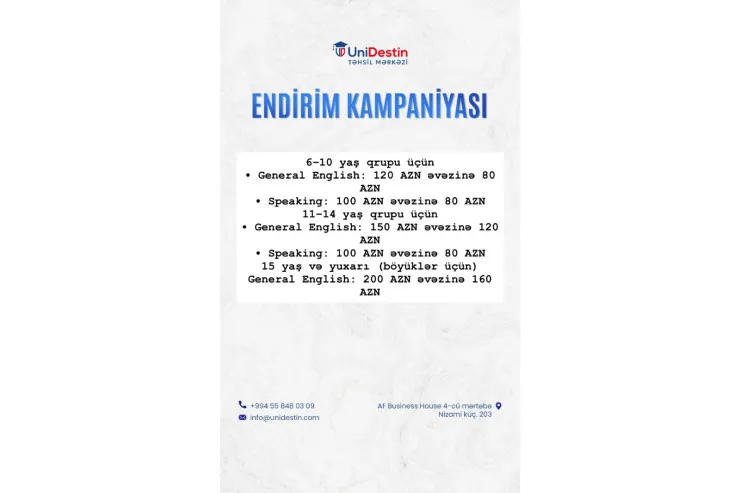 - Speaking: 100 AZN əvəzinə 80 AZN